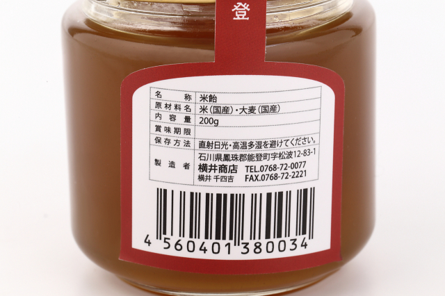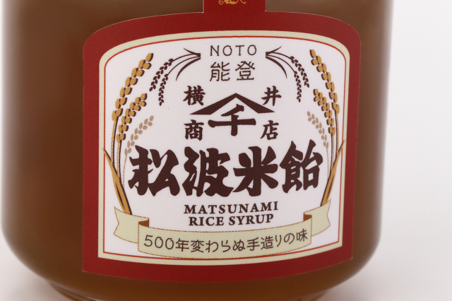 横井商店は能登で唯一の米飴製造メーカーであり、横井商店の商号で「松波米飴」を製造販売したのは2代目の横井三代吉の代からです。